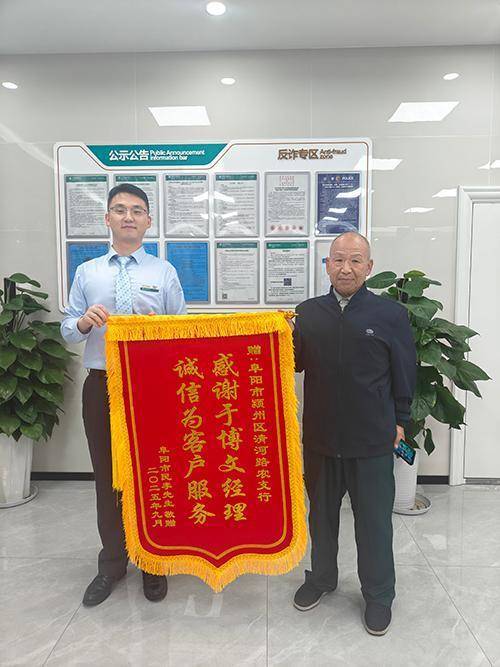 一面红彤彤的锦旗,一份千里甸甸的感恩。2025年9月24日,一位曾在中国农业银行阜阳清河路支行得到匡助的乐龄客户,专程复返网点,将印有“感谢于博文司理诚信为客户处事”字样的锦旗送到责任主说念主员手中,对支行高效暖心、专科厚爱的处事抒发高度称赞。