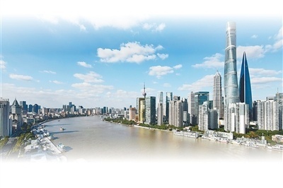 在上海黄浦区南外滩高处俯视黄浦江两岸景象。 王 冈摄