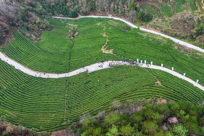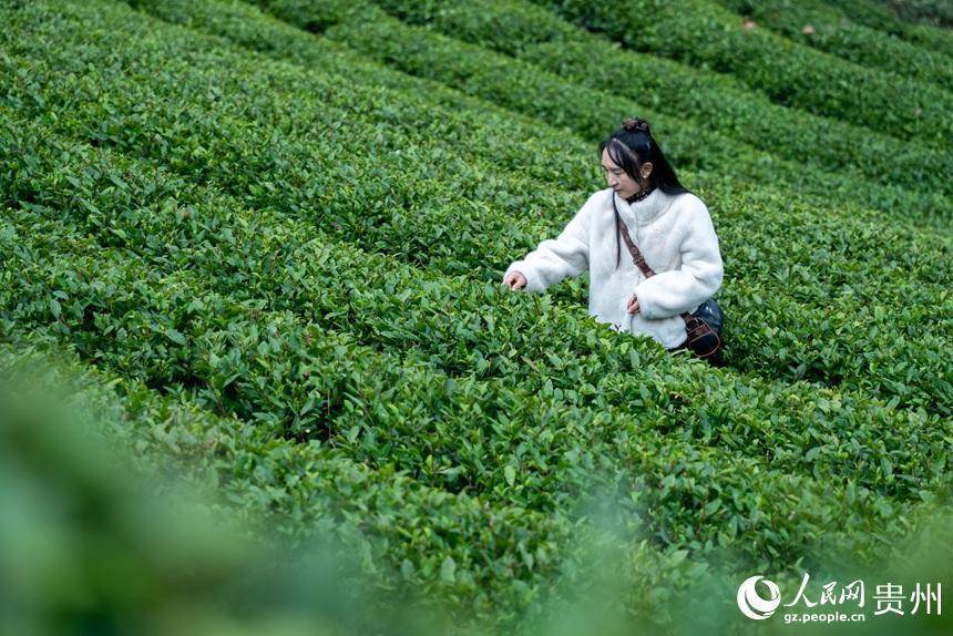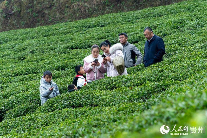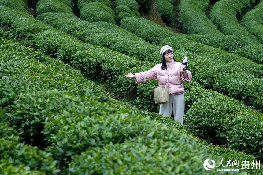 搭客在茶园内打卡拍照。东说念主民网记者 涂敏摄